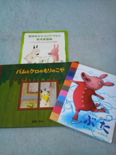 いつもポストカードぐらいしか買わない私が今回は(写メ参照)2冊の絵本と、明日会う友人たちに可愛いファイルを買い、4才のmちゃんに絵本見せてあげよう