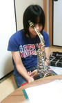 カフェで速攻ランチを済ませ、午後のレッスンに間に合うよう帰宅。4れしぴに初めてサックスを演奏してもらう夕ちゃん。私の伴奏と初めて合わせて、なかなかの音色だったので安心。若いっていいな…、Uちゃんの絵も夕ちゃんのサックスもまだまだ可能性があるもの。 絵と音に刺激を貰えた1日でした。 夕ちゃんのサックス姿アップします