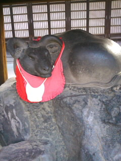 牛嶋様には「撫で」というのがあり(写メ参照)、自分の具合が悪い所を撫でると、(目が悪いならの目)良くなるという。