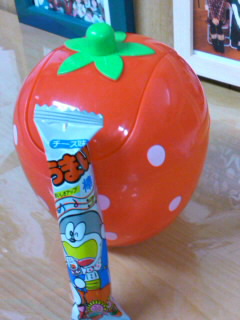 ~!と、うまい棒「チーズ味」。